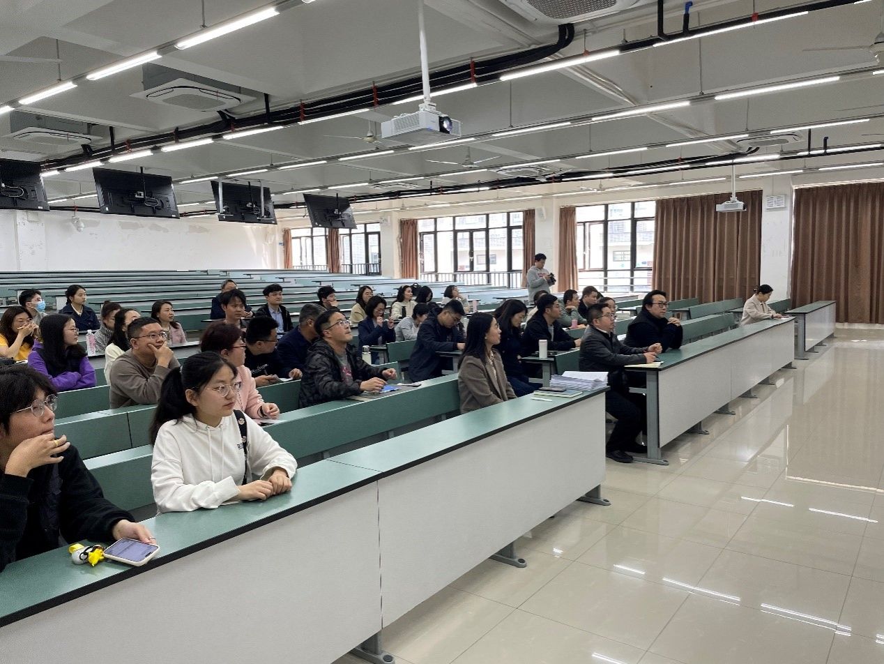 于X4350召开全院教职工大会,学院党委书记甘霖、执行院长龚正君、副院长张涵、党委副书记胡安辉,以及全院教职工老师参加大会。